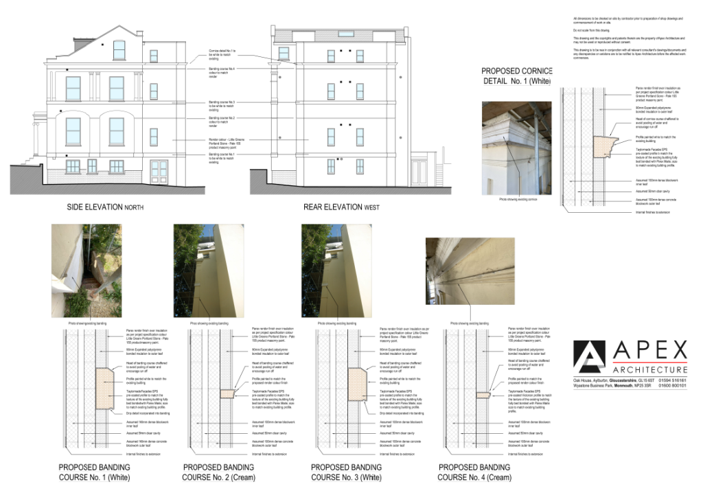We addressed the various planning and listed Building Conditions within several Discharge of Conditions Applications. Within these applications, details such as clarification on materials and joinery details to windows and doors were designed and provided, and render details were specified and detailed. Information on the bin/bike storage facilities was designed and provided. These pieces of further design led to a compressive planning position to allow the scheme to move forward into the technical design stage for the Building Regulations package.
