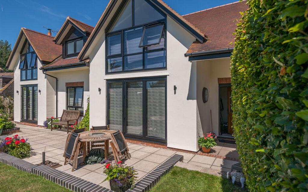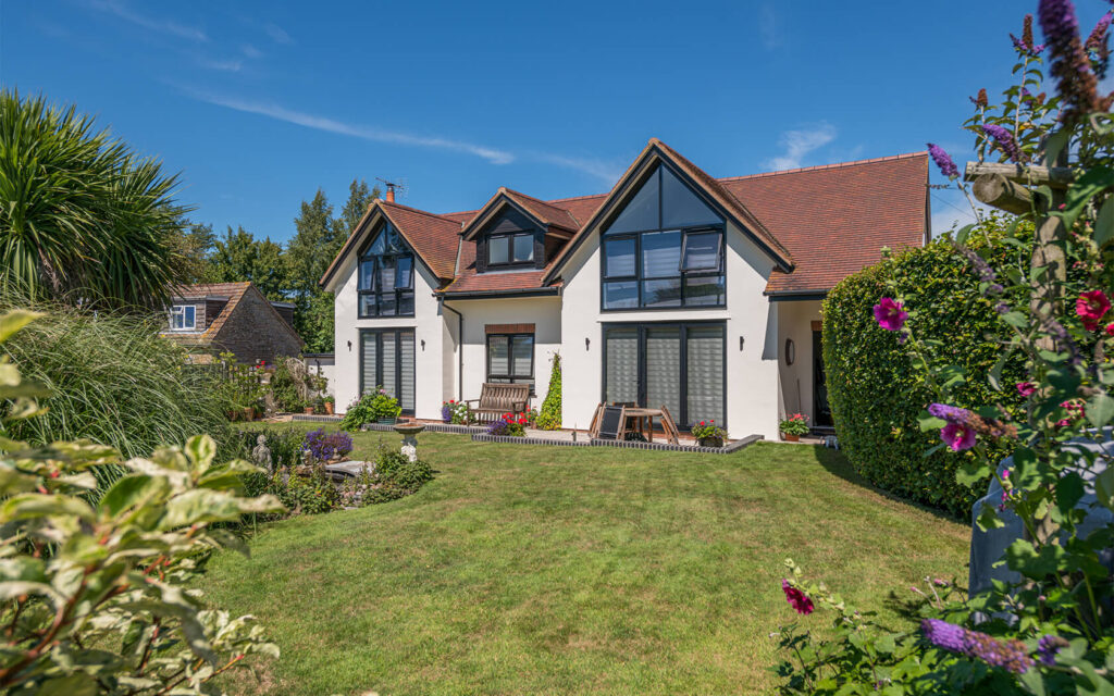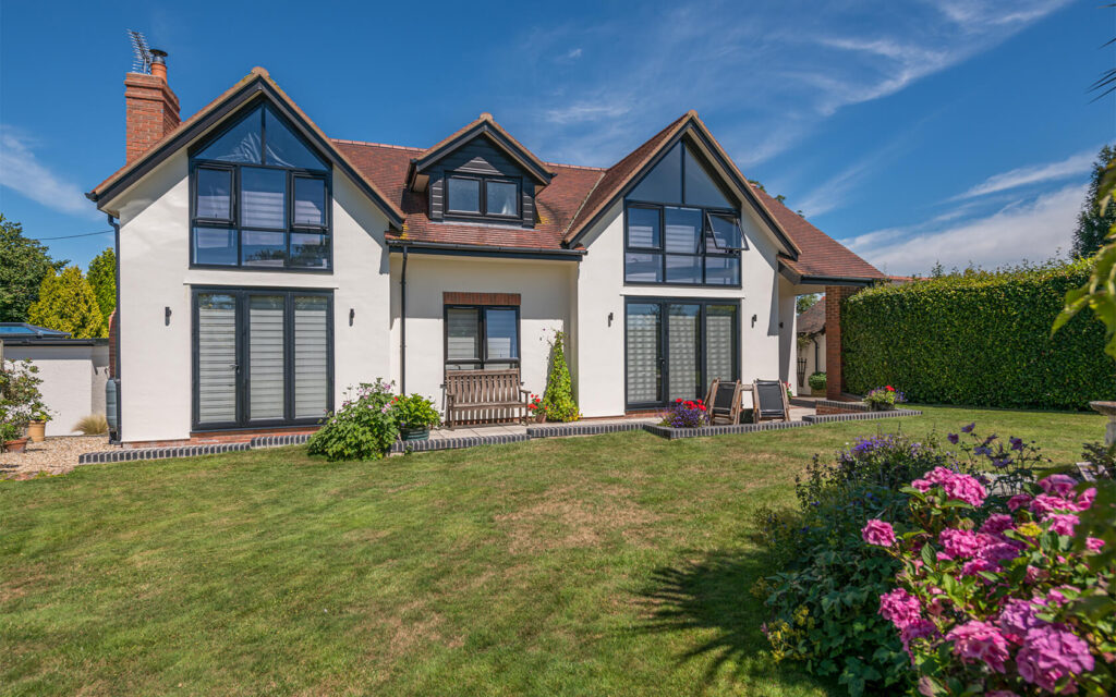 Traditional form with modern design. This property replaced the existing bungalow on the site. The drainage considerations were significant, due to flooding risks and mitigation measures / evidence of the design / new dwelling location being above the predicted flood levels.