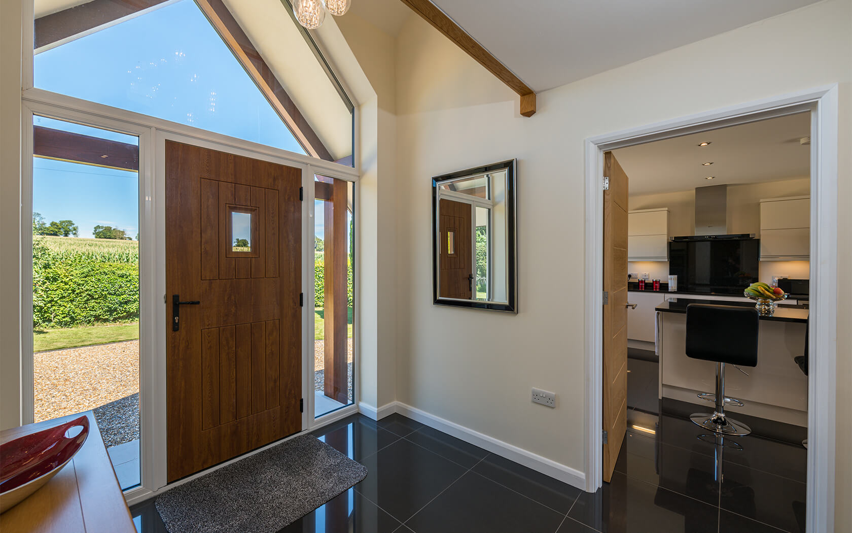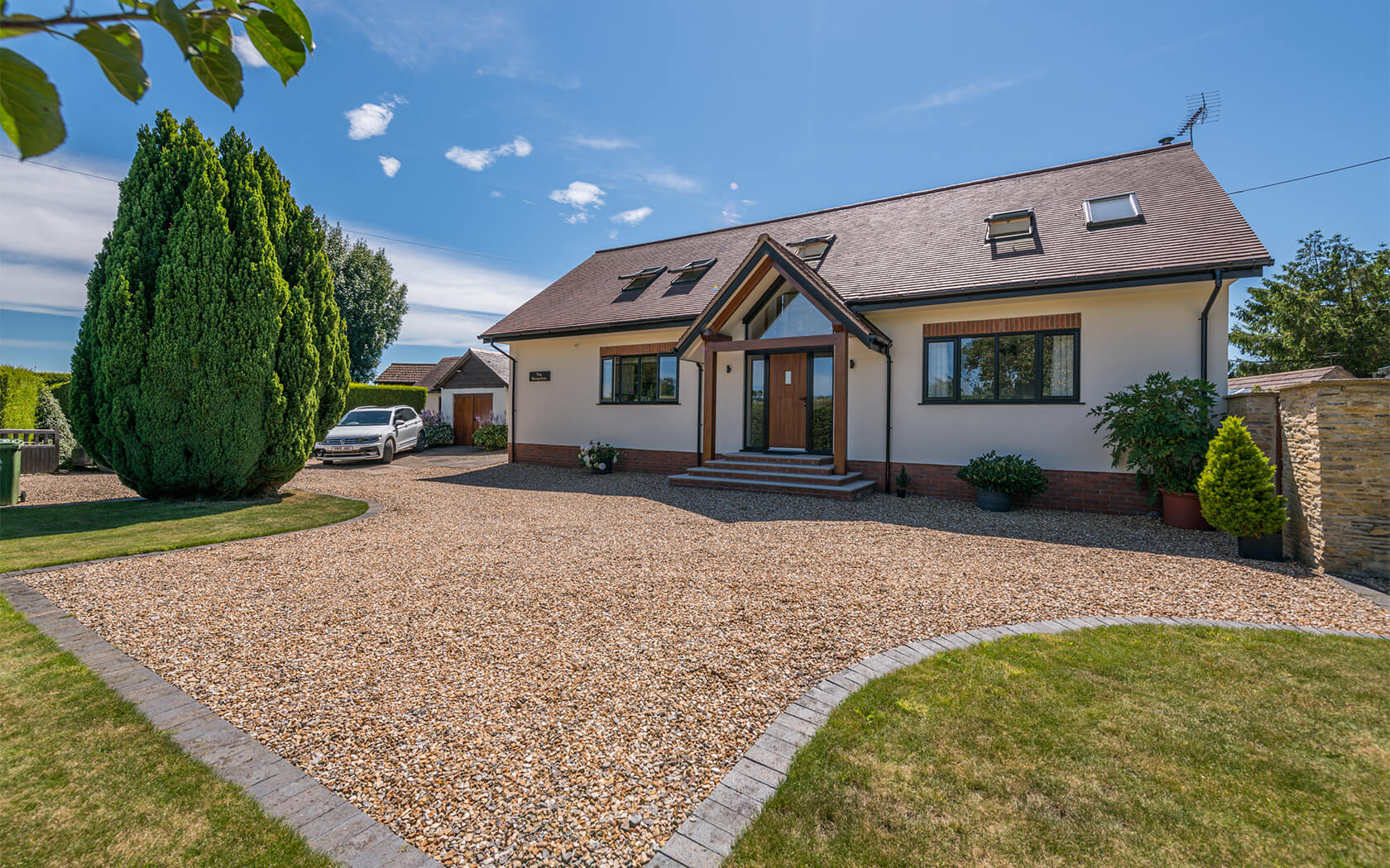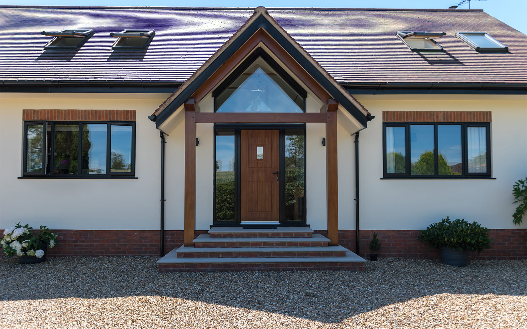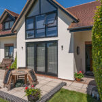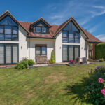 Traditional form with modern design. This property replaced the existing bungalow on the site. The drainage considerations were significant, due to flooding risks and mitigation measures / evidence of the design / new dwelling location being above the predicted flood levels.